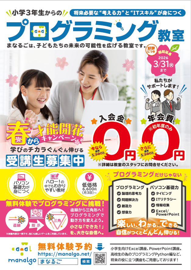 お子さま向けプログラミング講座の春キャンペーンを実施中です!